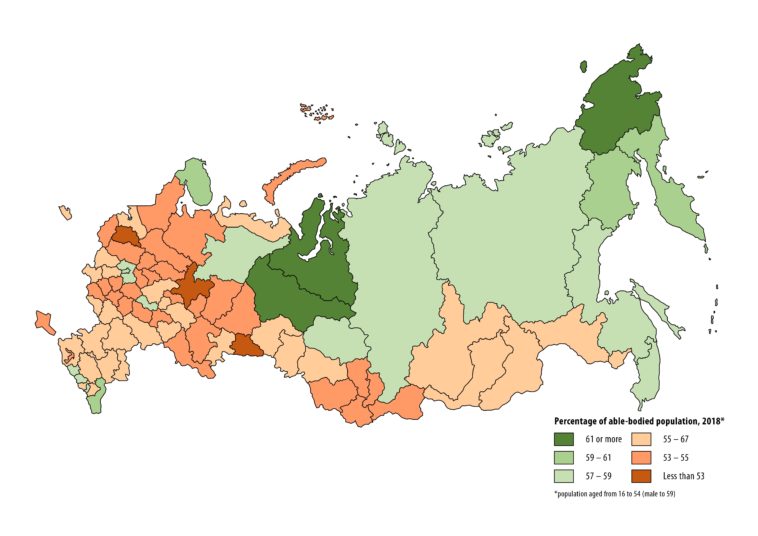 Percentage of able-bodied population in Russian federal subjects