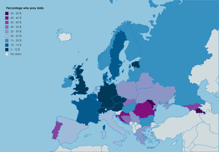 Map : Percentage of Europeans who pray daily [OC] [2000 x 1400]
