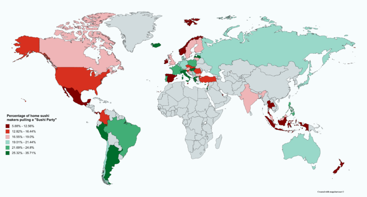 Map Info & Chart : Percentage of “Home sushi makers” who are pulling a “Sushi Party” (2018)