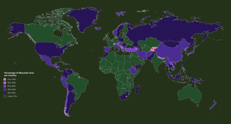 Map Info & Chart : Percentage of Mountain Area per Country