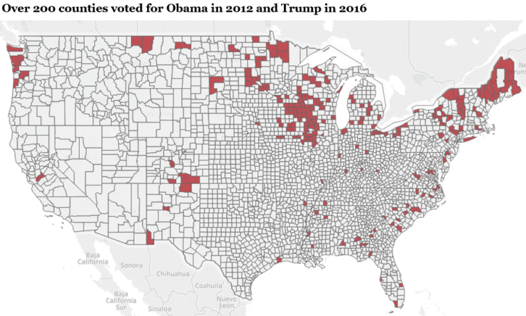 Pivot Counties, Counties that voted Obama in 2008, Obama in 2012 and then Trump in 2016
