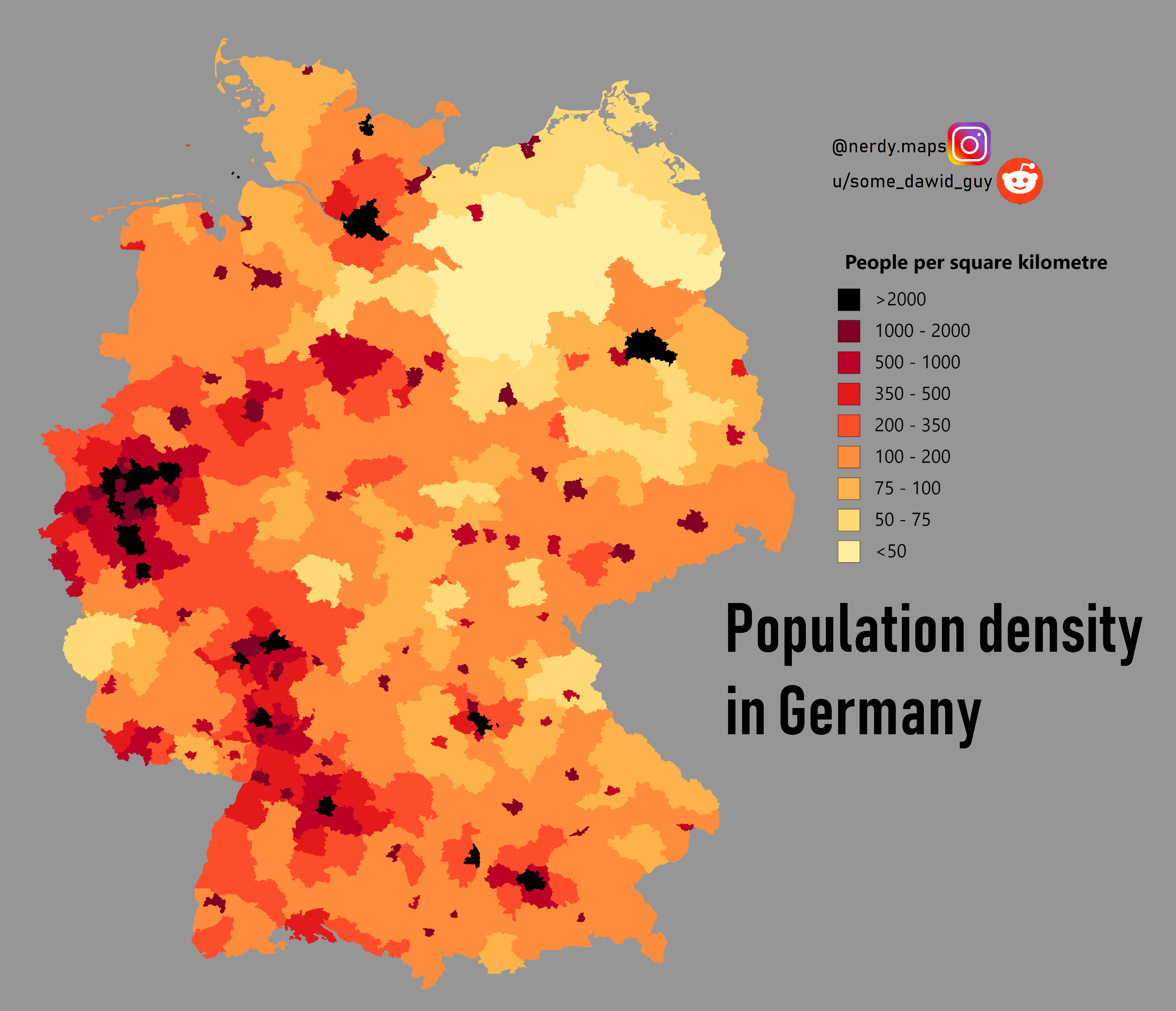Map Info & Chart : Population density in Germany [OC]