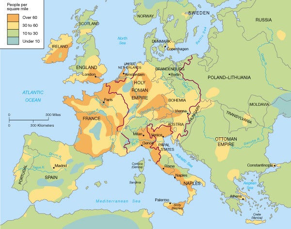 Population Density of Europe, ca 1600 (X-Post from r/Europe)