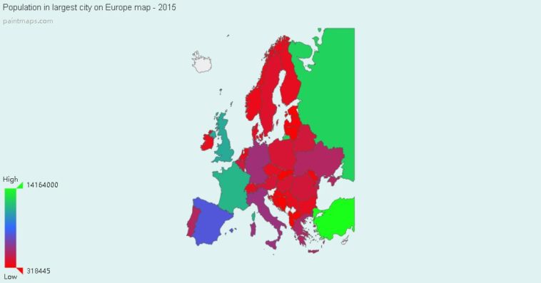 Map : Population in largest city (Europe)