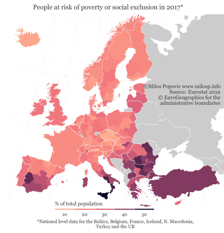 Poverty and social exclusion in Europe (see more maps @ www.milosp.info)[OC]