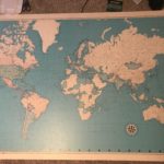 Map : Traveler’s map my girlfriend gave me, the green dots in the US are their domestic trips, and red are international. There were also 3 in the UK in London, Glasgow, and Edinburgh that fell off (Made in early 1950’s)