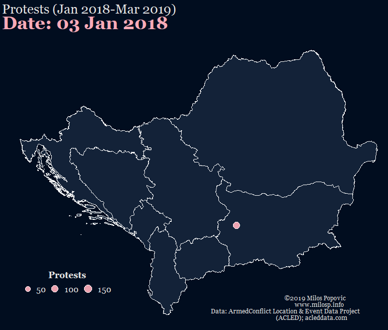 Protests in the Balkans and Romania, Jan 2018-March 2019 (see more maps @ www.milosp.info)[OC]