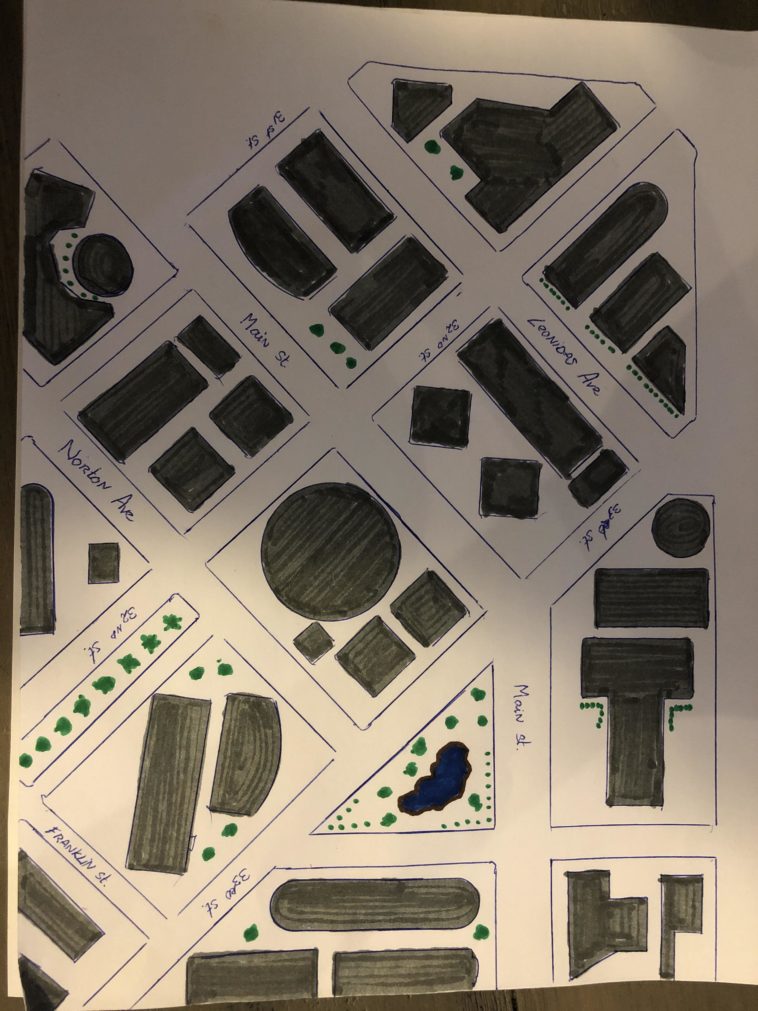 Random map of a few imaginary city blocks. It was doodle time….