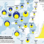 Map : EU budget: contributions (blue) and expenditure (yellow)