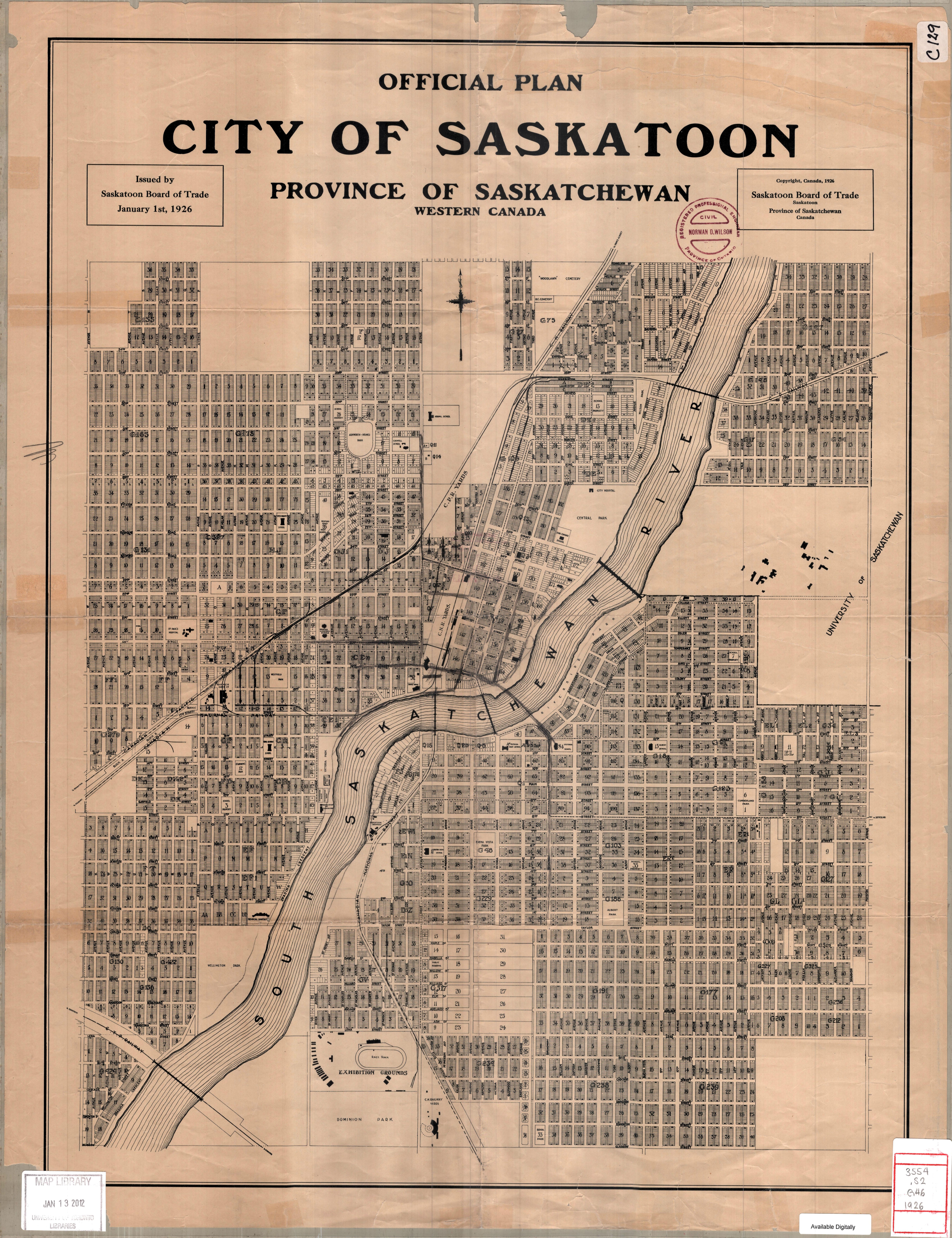 Map Info & Chart : Saskatoon, Saskatchewan (1926)