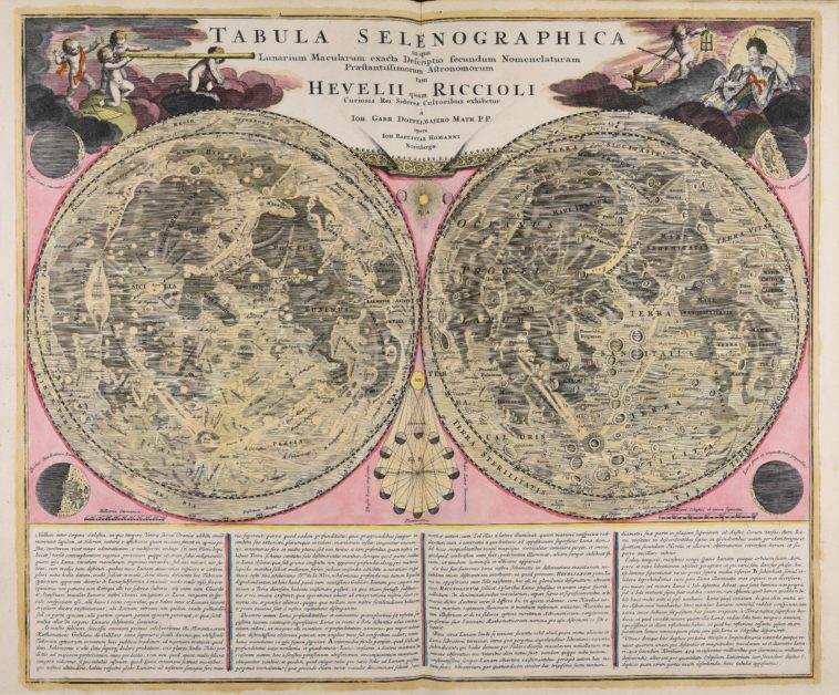 Map Info & Chart : Selenography (the study of the surface and physical features of the Moon), Doppelmayr, circa 1750 [5,693 × 4,714]
