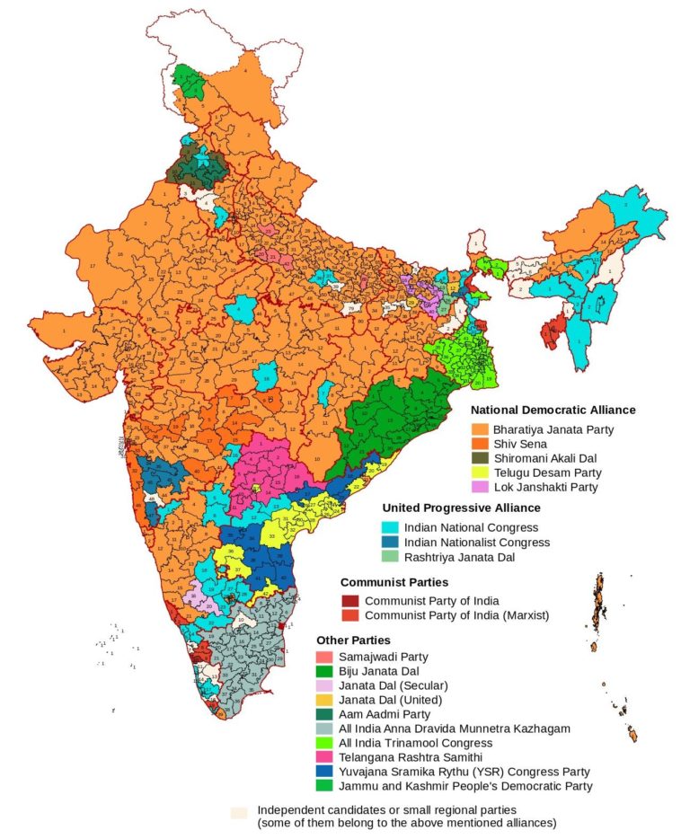 Since India is having their next election this year here is a map of the 2014 Indian general election.