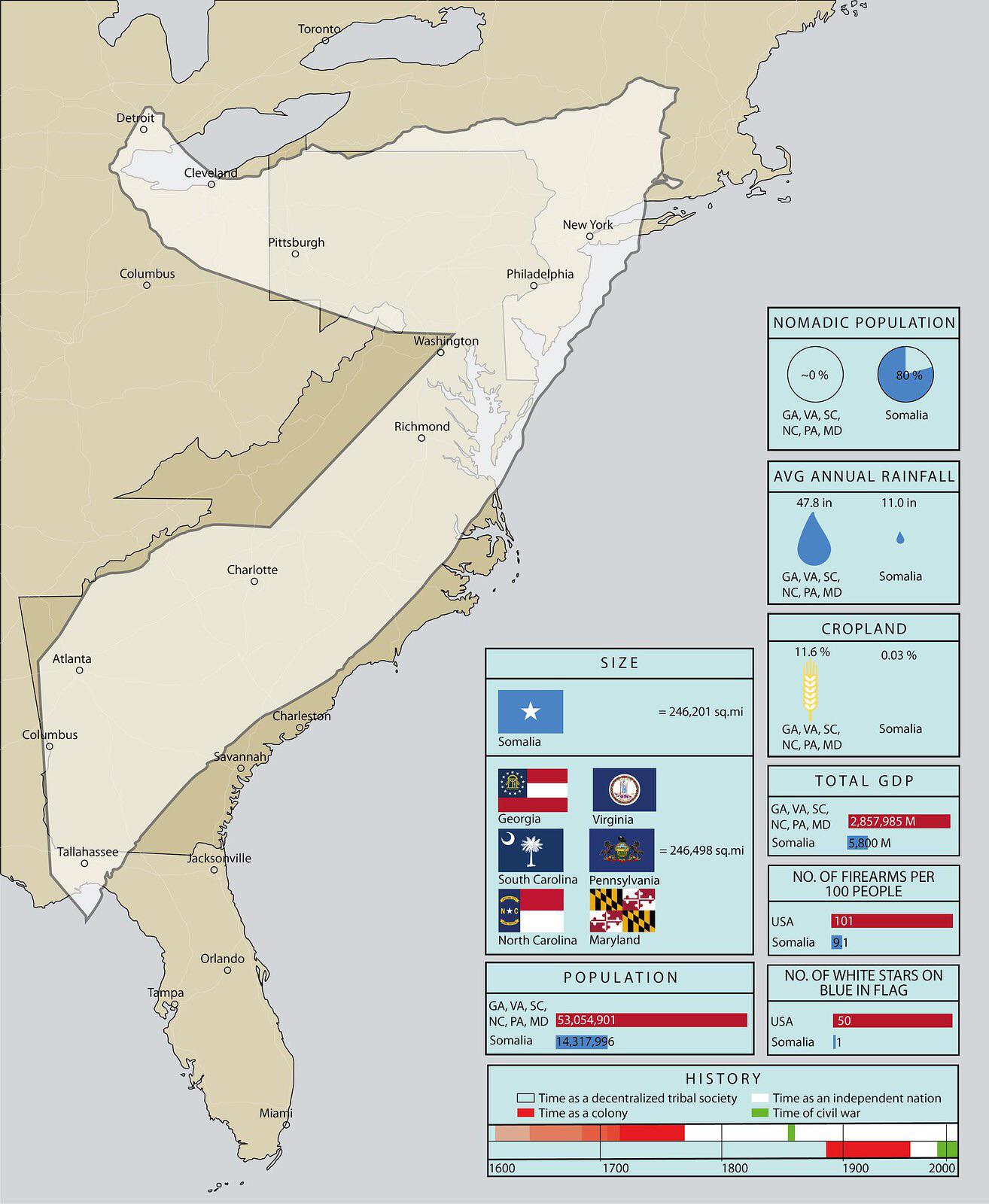 Map : Size of Somalia, with statistics