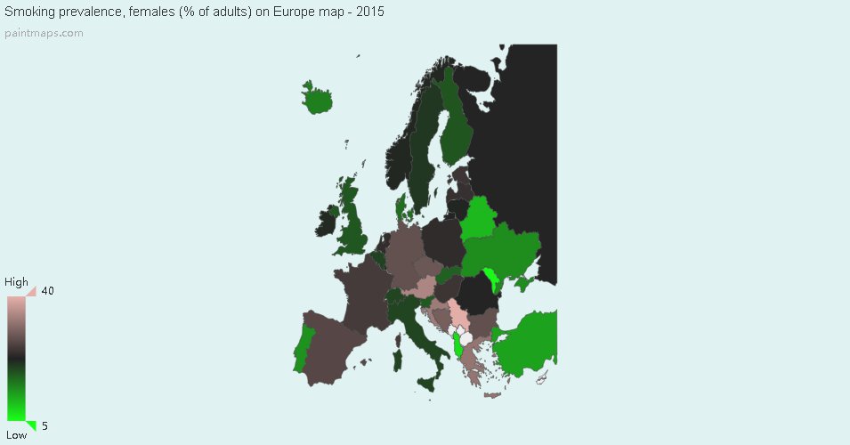 Map Info & Chart : Smoking prevalence, females (% of adults) (Europe)