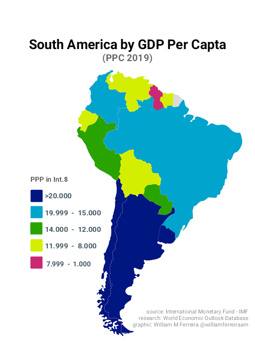 Map Info & Chart : SOUTH AMERICA BY GDP PER CAPTA (2019)