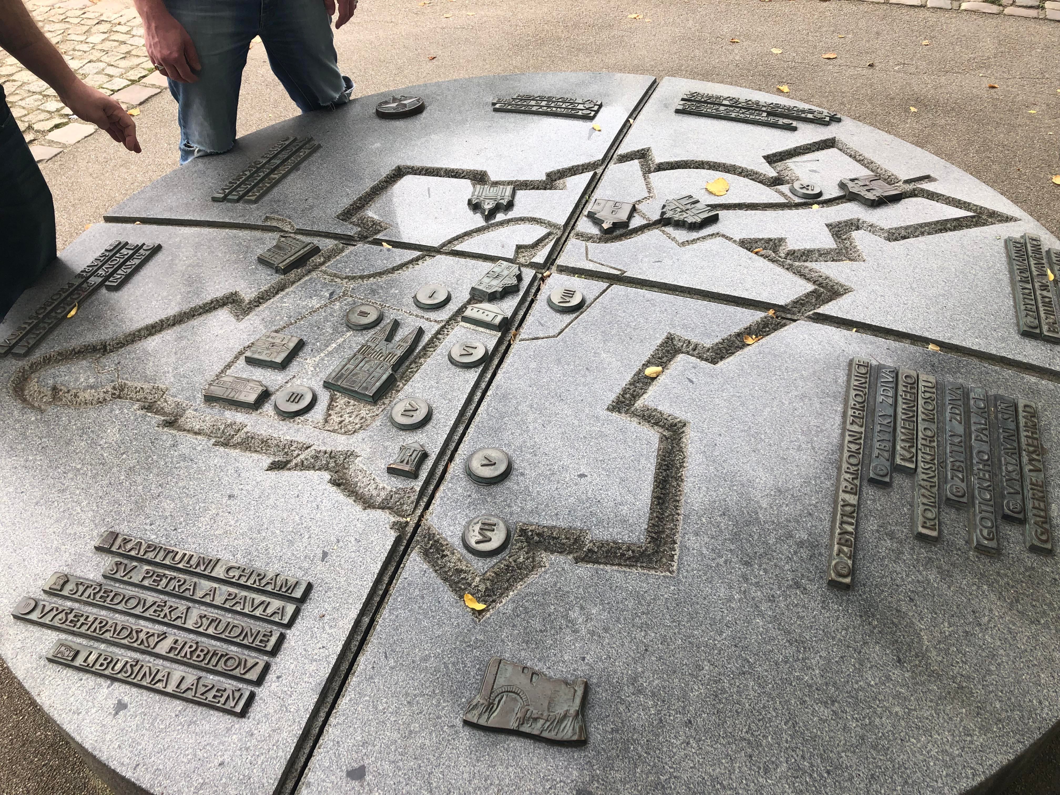 Map Info & Chart : Stone and metal map of Vyšehrad Castle in Prague.