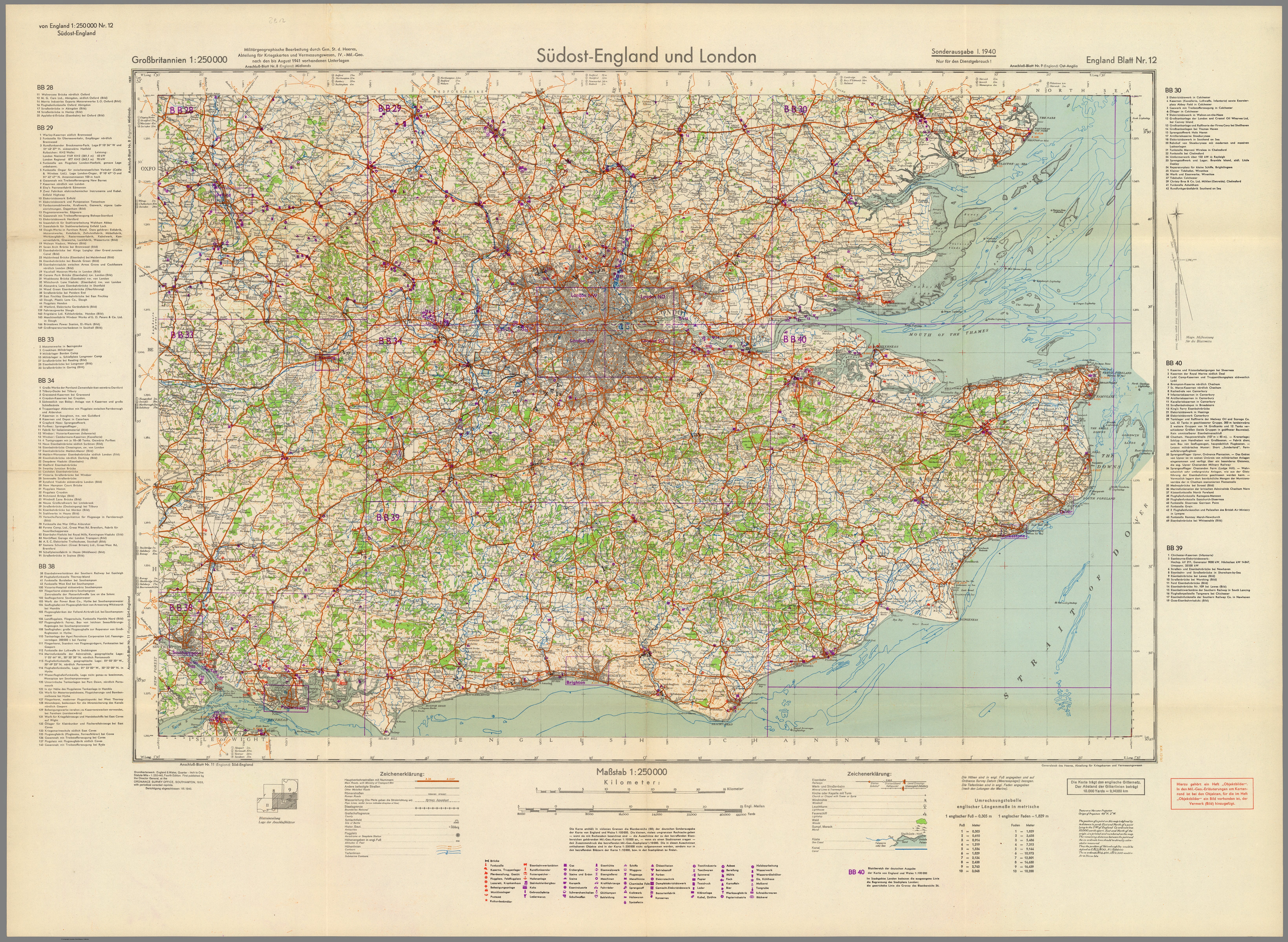 Map Info & Chart : Sudost-England: A map of used by Nazi forces to plan for an invasion of England (1941)