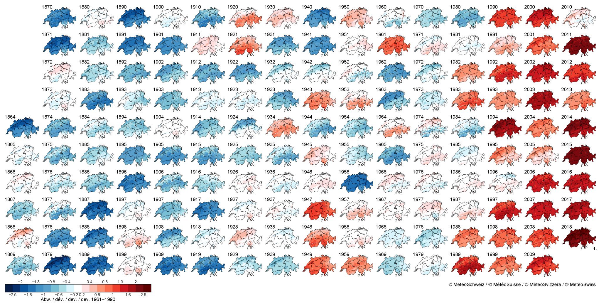Map Info & Chart : Temperature deviation in Switzerland since 1864