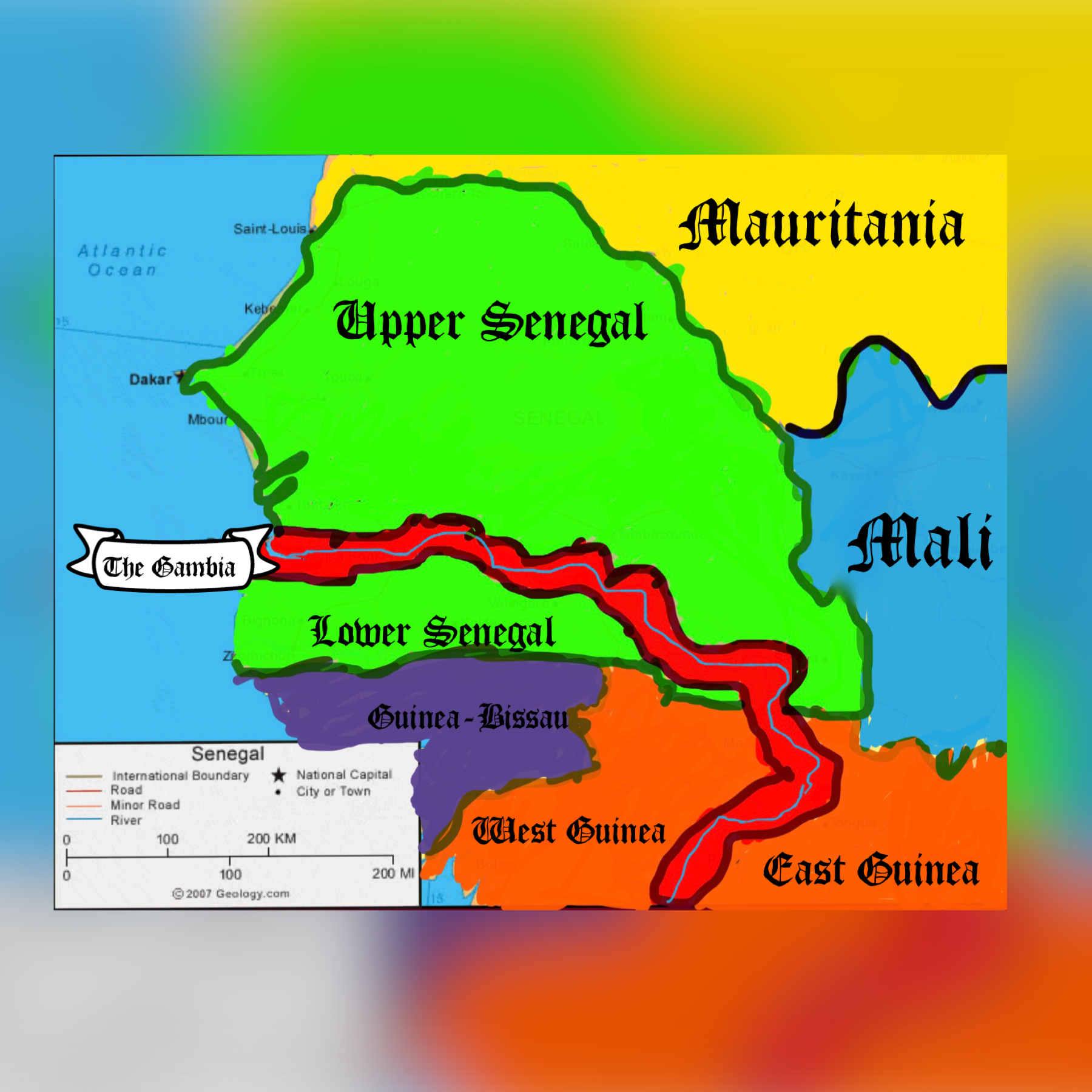 Map Info & Chart : The Gambia, but it follows the entire River Gambia.
