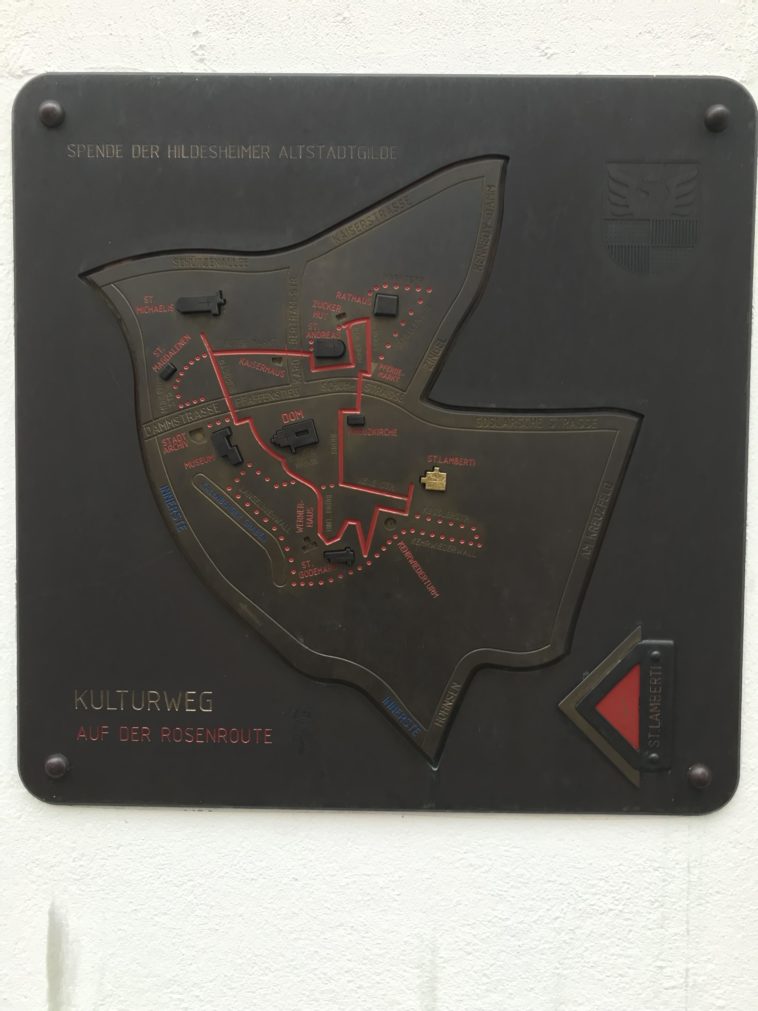 The map of Rosenroute on a wall in Hildesheim, Germany.