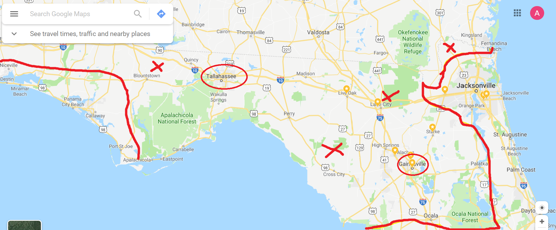 The parts of Florida that are considered “The South”.