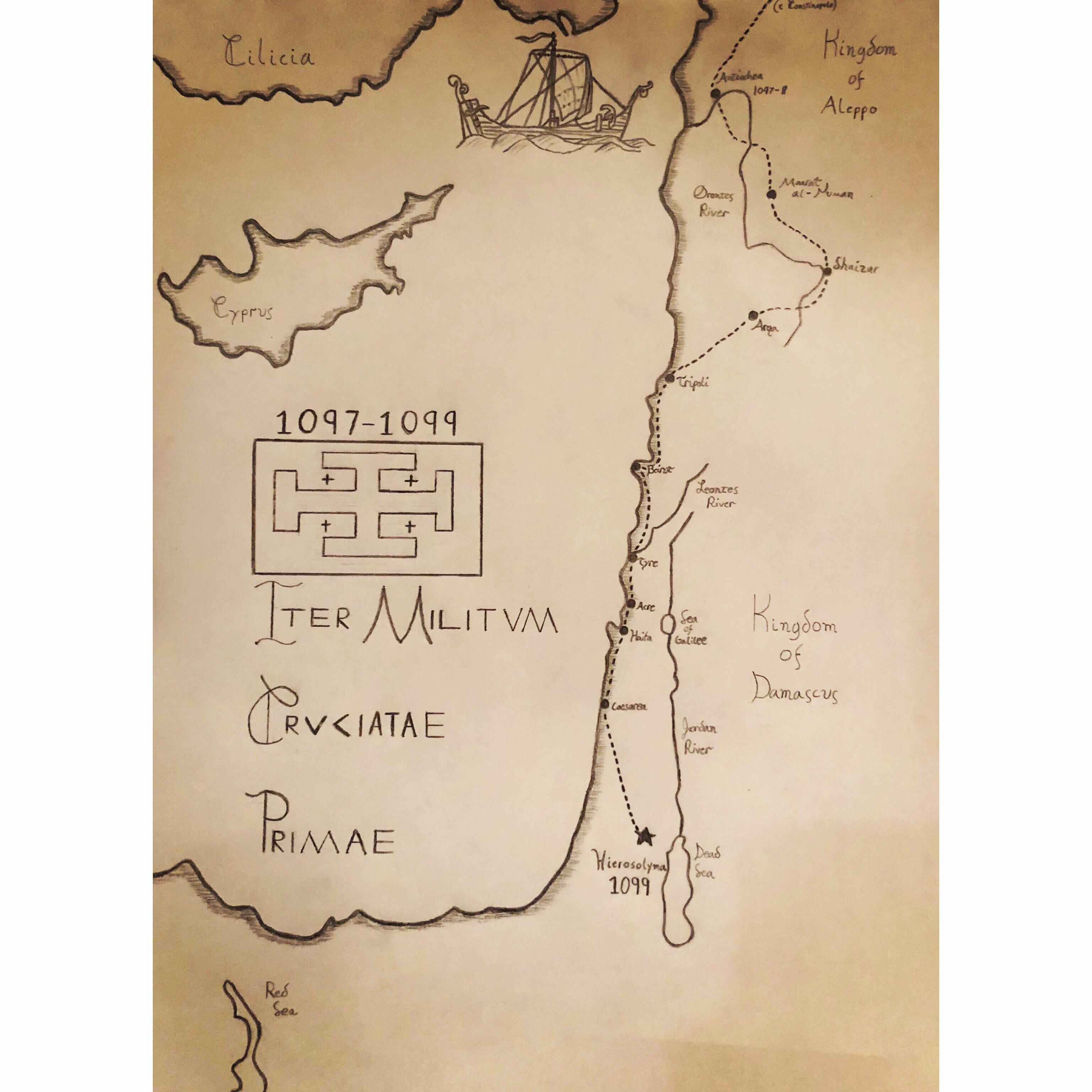 The Route of the First Crusade in the Holy Land (OC: July 2018)