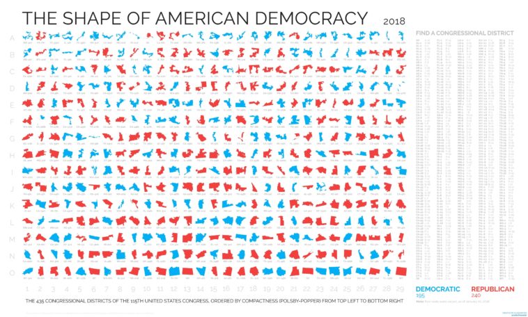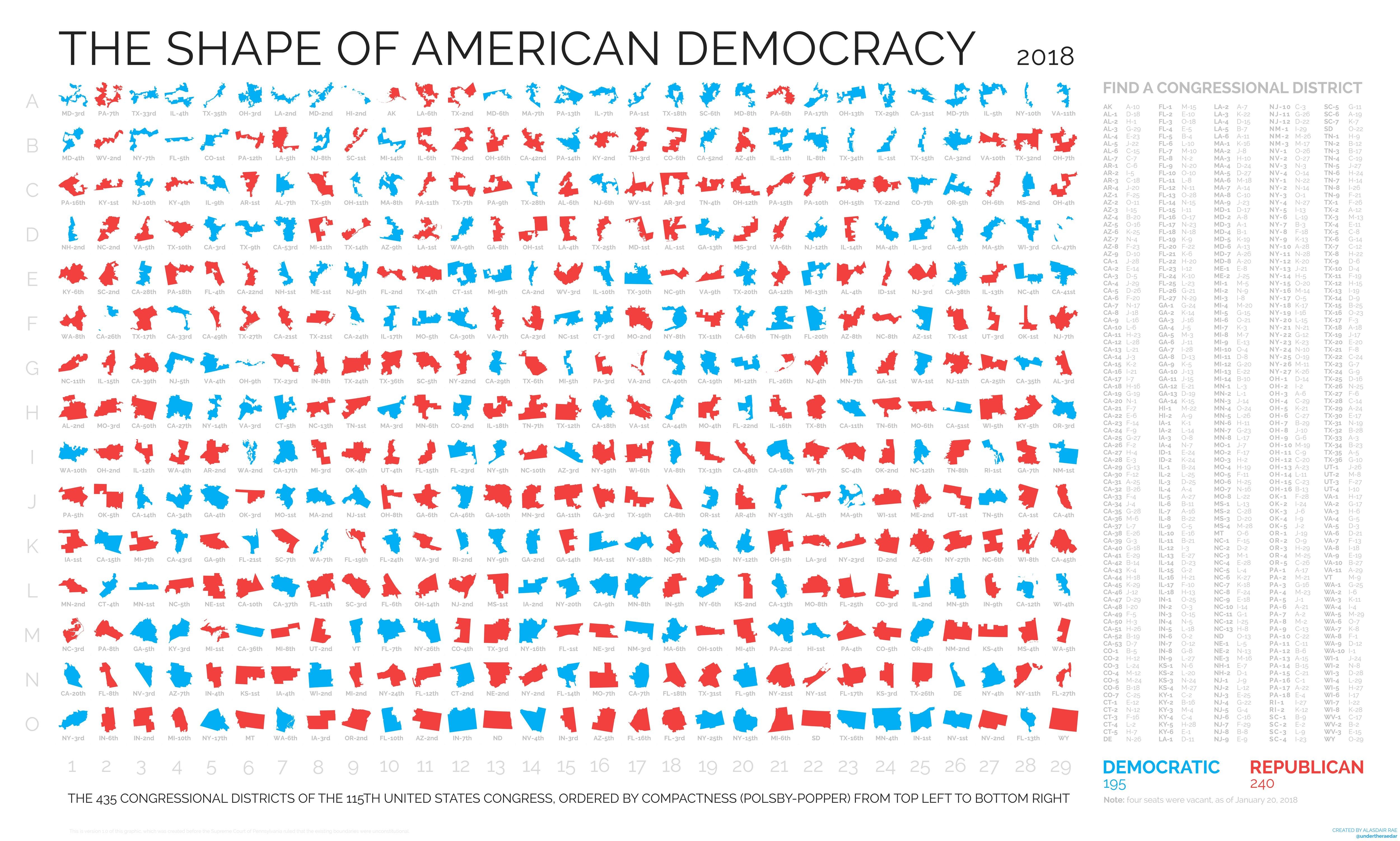 Map Info & Chart : The Shape of American Democracy : showing all 435 US Congressional Districts of the 115th US Congress – by Alasdair Rae