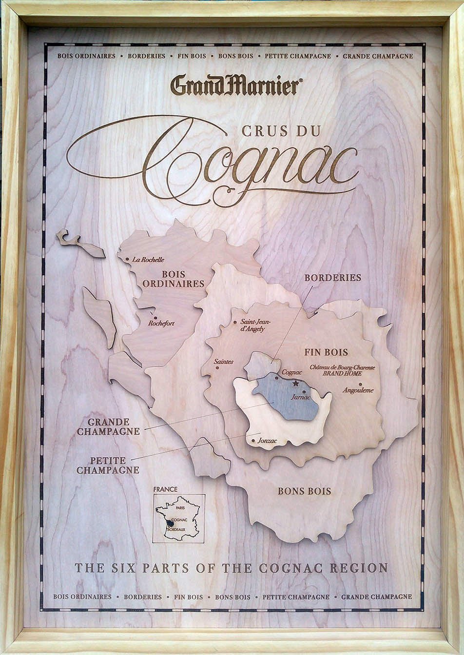The Six Parts of the Cognac Region, A LaserCut Map for GrandMarnier