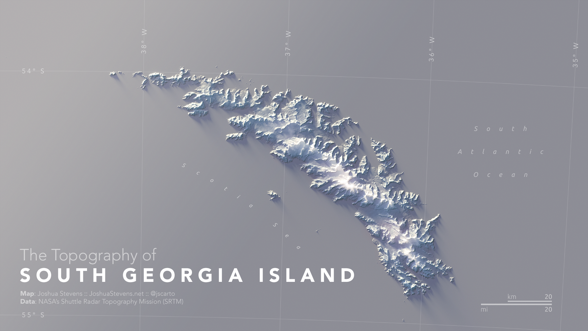 Map Info & Chart : The Topography of South Georgia Island [OC]
