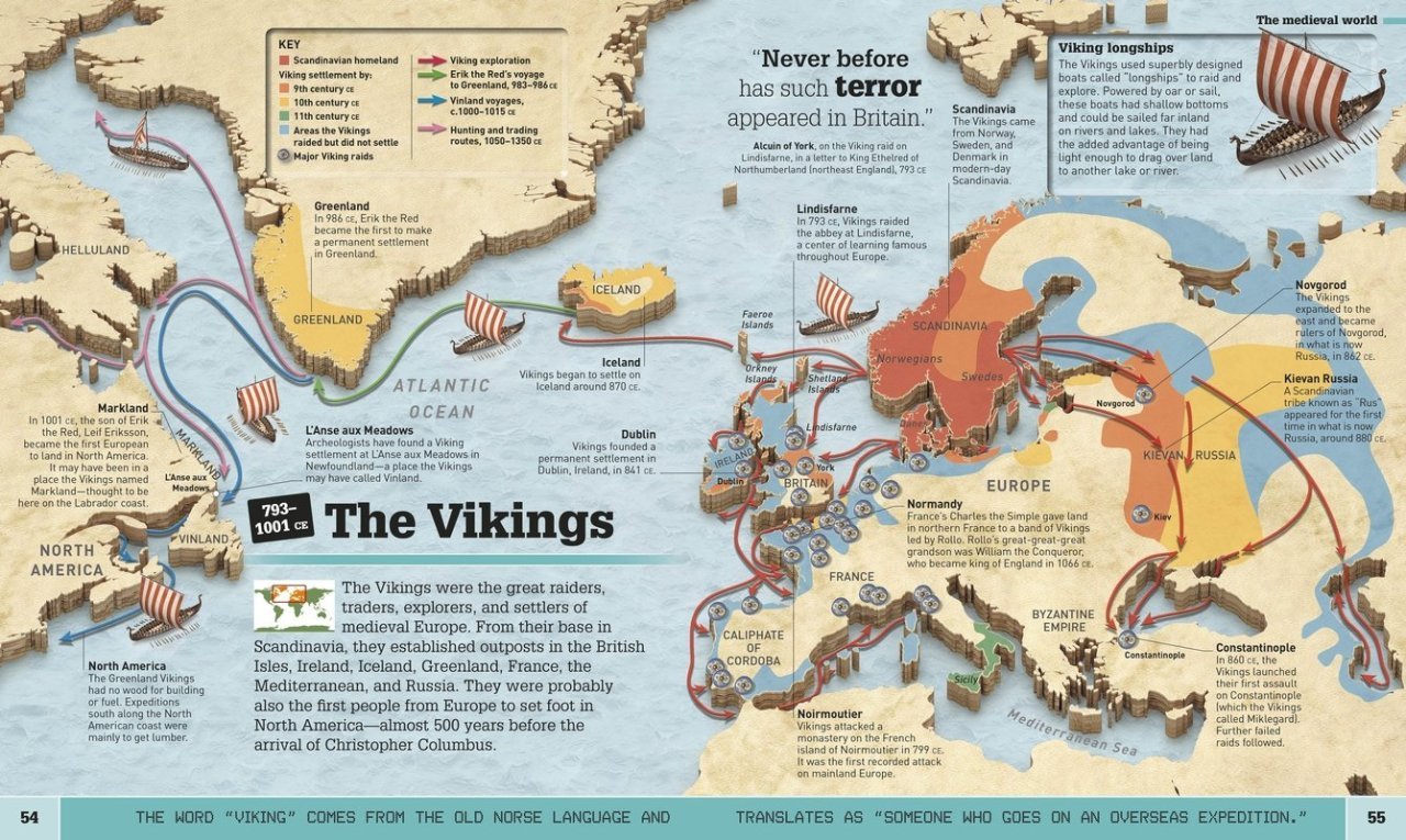 Map Info & Chart : The Vikings, 793-1001.