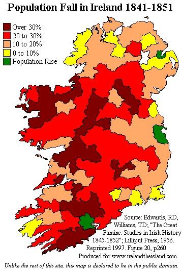 Map Info & Chart : This map showing how the Irish famine affected its population