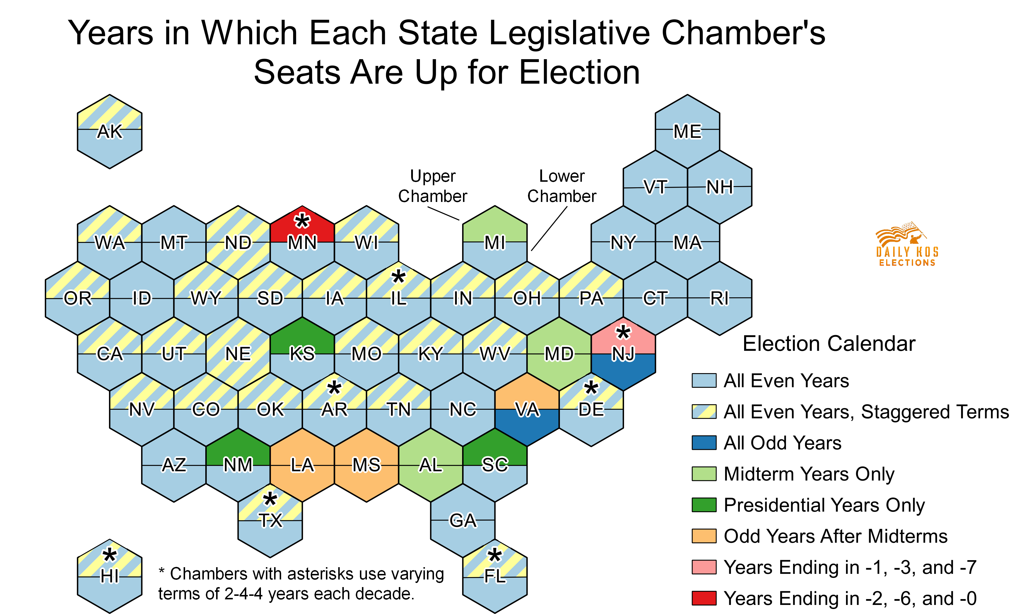 Timing of U.S. state legislative elections for each chamber [3507 x 2098] [OC]