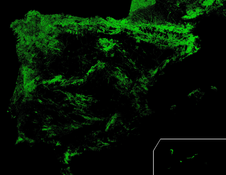 Tree cover map of Spain and surrounding areas [1600×1234]