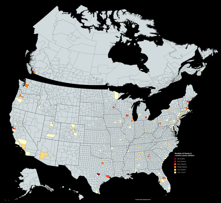 Map : Ultimate Frisbee Teams in the US and Canada (Club Men’s)