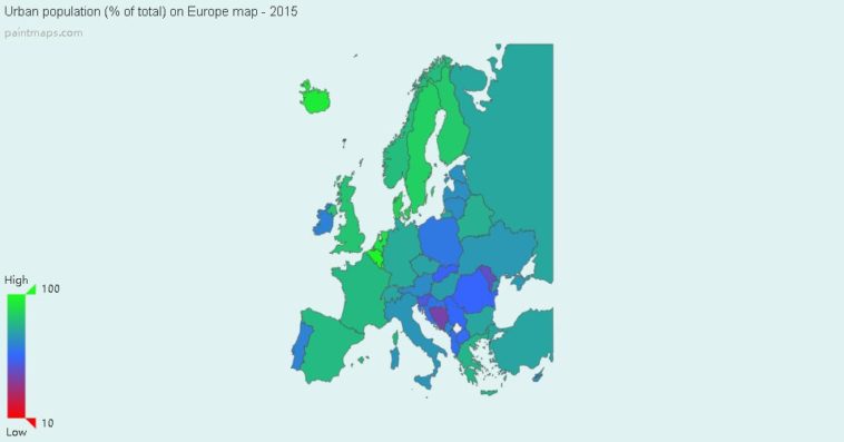 Map Info & Chart : Urban population (% of total) (Europe)