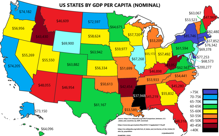Map Info & Chart : US States by GDP per capita nominal (Q2 2018) [1125×700] [OC]