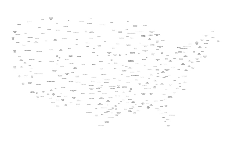 US watersheds names. No boundaries