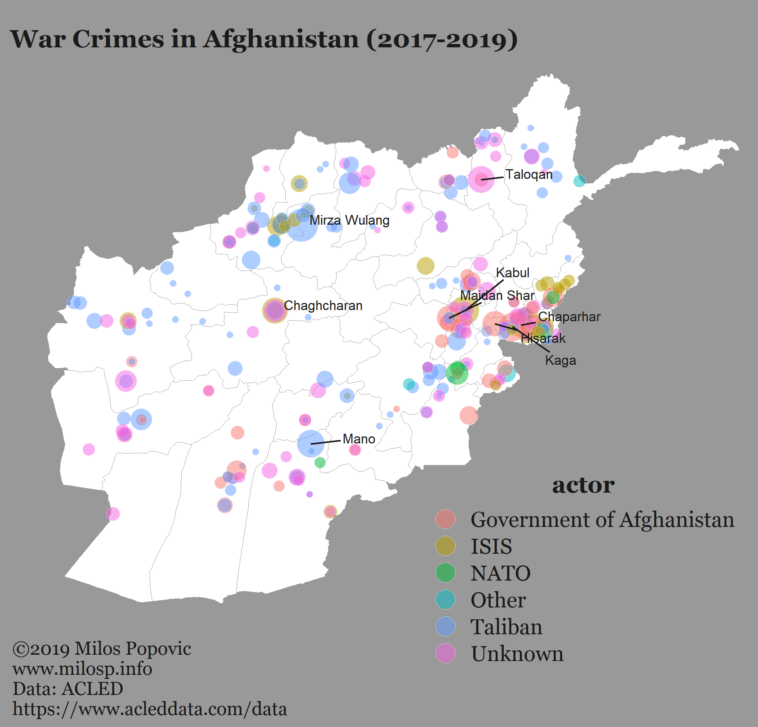 War crimes in Afghanistan, 2017-2019 (see more maps @ www.milosp.info)[OC]
