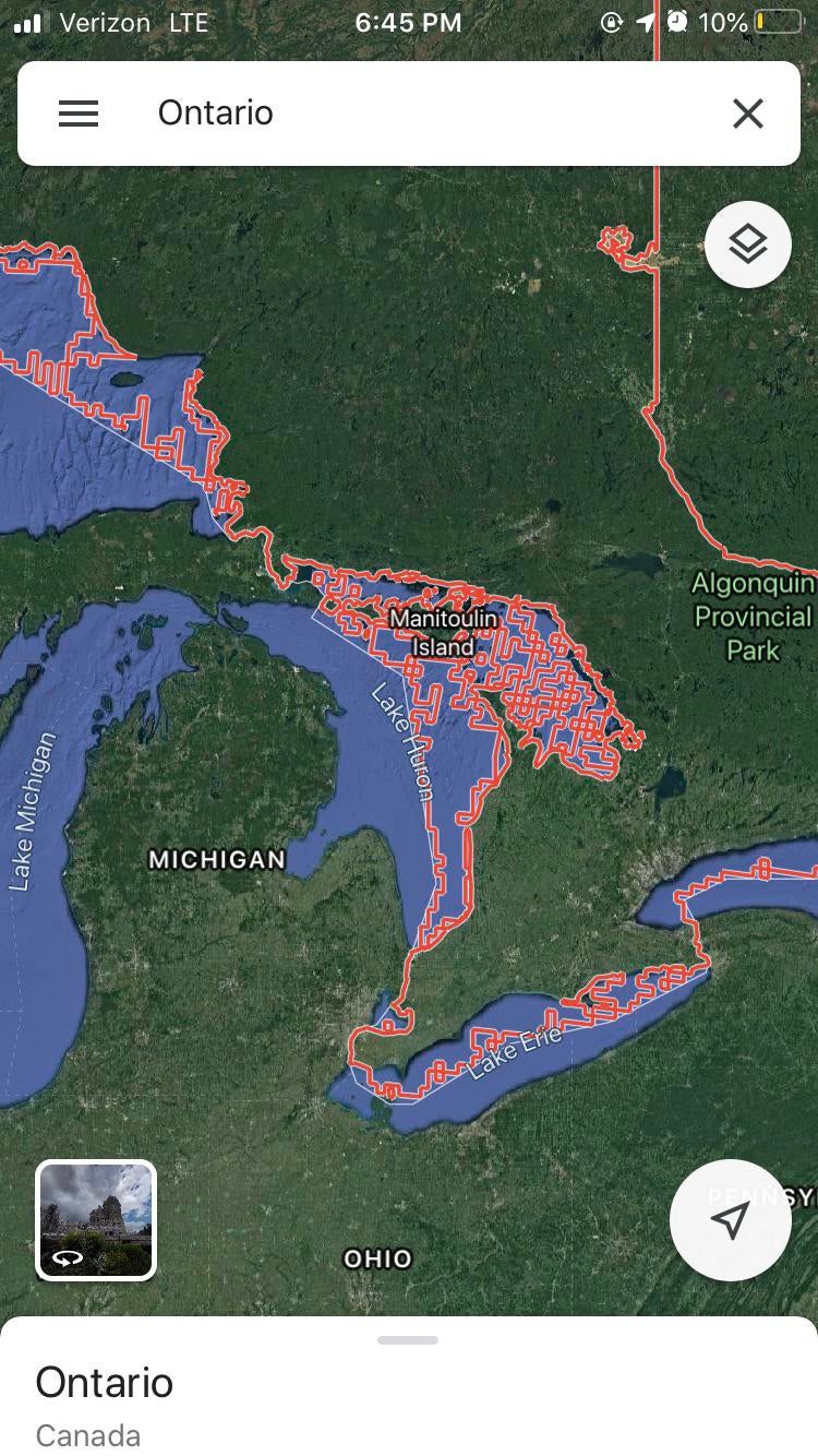 Weird but kinda cool border outline of Ontario, Canada, anyone know the cause for the crazy lines shown?