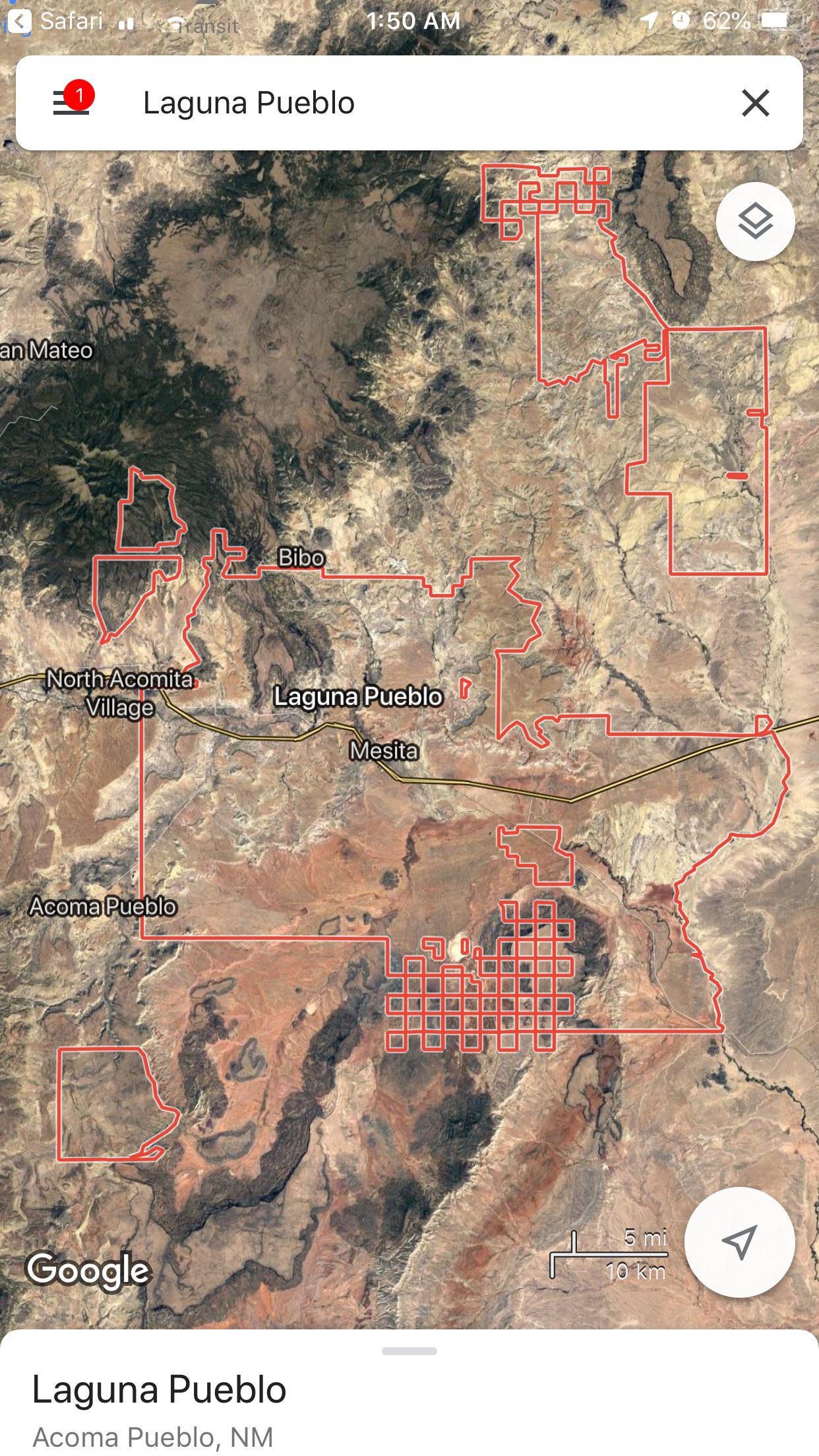 Map Info & Chart : What is going on with borders of the Laguna Pueblo reservation in New Mexico? Specifically the odd grid shape, is this a Google Maps mistake?