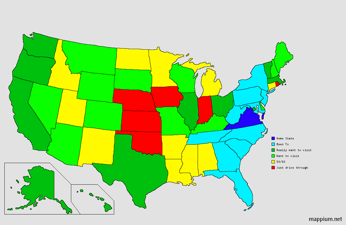 Map Info & Chart : Where I’ve been in the US. I am from Southwest Virginia.