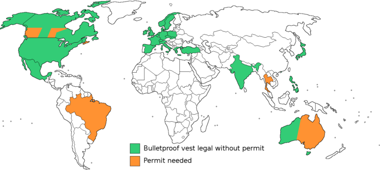 Map Info & Chart : Where you need permit to wear bulletproof vest