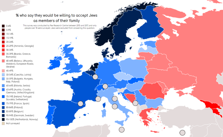 Map Info & Chart : % who say they would be willing to accept Jews as members of their family