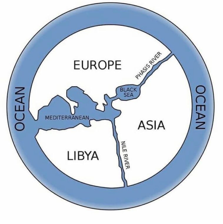 World map according to the Pre-Socratic Greek philosopher Anaximander (610-546 BC) Source: https://bit.ly/2HwgVXA