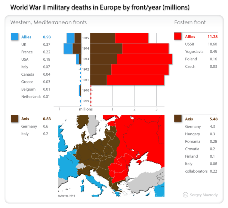 Map Info & Chart : World War 2 Military Deaths in Europe