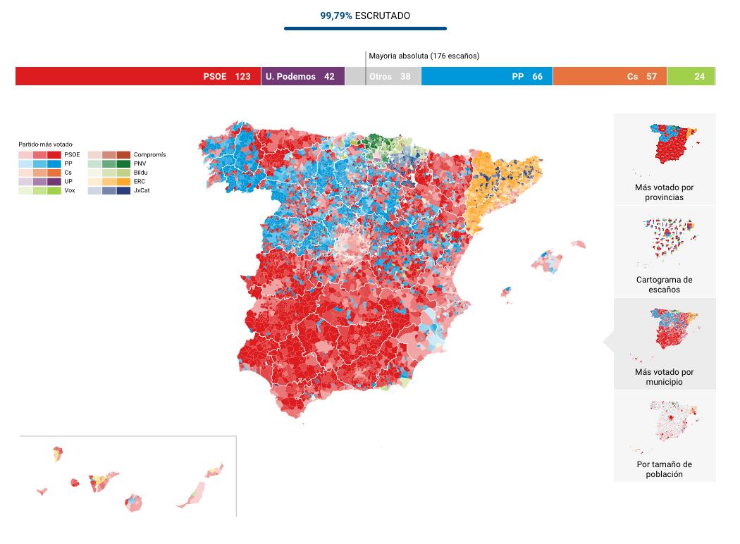 Map Info & Chart : Yesterday’s General Elections Results in Spain. Can you identify the two regions with pro-independence movements?