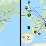 Map : Distance between Major League Soccer teams from North America, mapped out over Europe