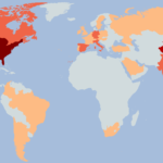 data visualization : Number of “Alpha cities” in each country according to Globalization and World Cities Research Network 2018 [OC]