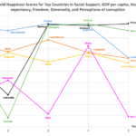 data visualization : 2018 World Happiness Scores for Top Countries in Various Factors [OC]