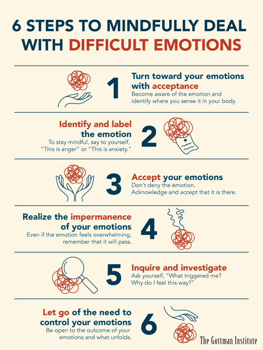 Infographic : 6 Steps To Mindfully Deal With Difficult Emotions
